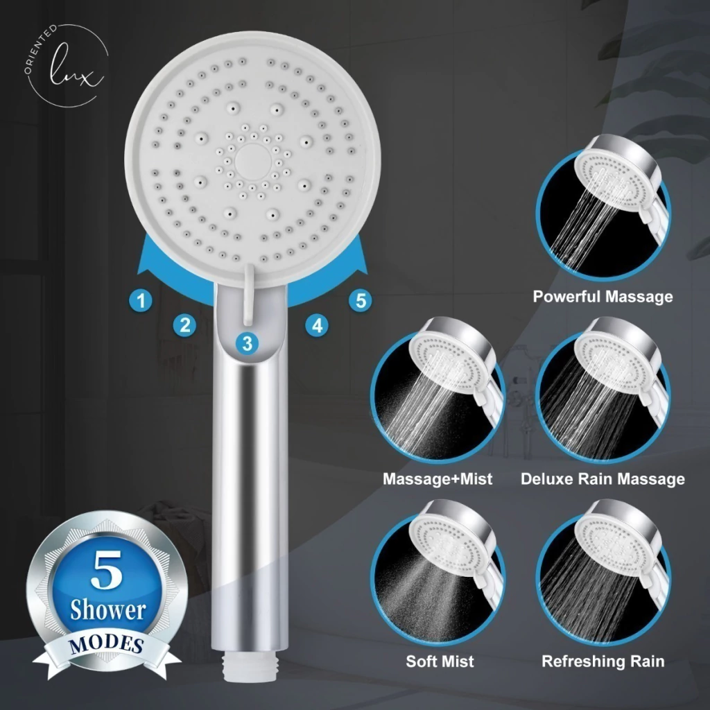3. Funcionalidad de cinco modos: El cabezal de ducha tiene una función de cinco modos que le permite cambiar entre diferentes modos de agua. Esto le brinda un mayor control sobre su experiencia de ducha, haciéndola más cómoda.